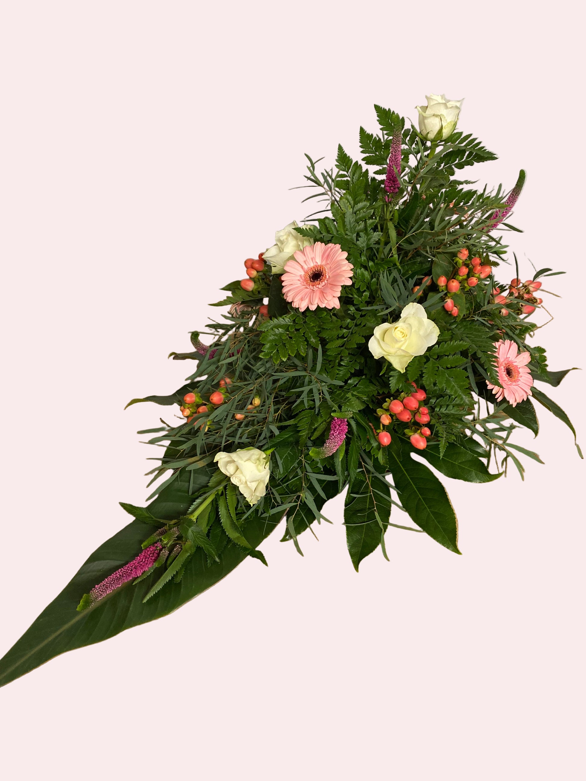 Dette design udstråler dyb respekt og ro – en klassisk hyldest til enhver begravelse eller mindehøjtidelighed.